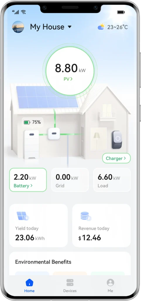 Moderna batterisystem styrs enkelt via smarta appar, så att du kan följa produktionen i realtid, optimera användningen och automatiskt prioritera var elen ska gå. Resultatet? Lägre kostnader, bättre kontroll och ett hem eller kontor som fungerar smartare – utan extra arbete.